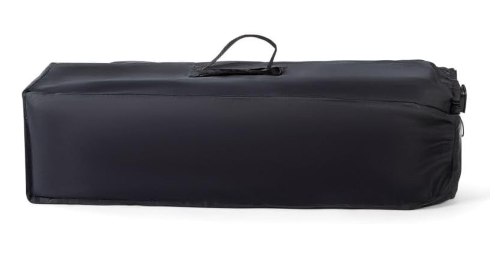 The award winning Sleeptight Travel Cot from Red Kite. Practical travel item useful for holidays or just visiting friends and relatives. Note: Once removed from the outer carton and poly bag, the cot is inside a black travel bag. Once the bag has been removed the mattress is wrapped around the actual cot. The mattress is firm on one side, in five sections, and has warnings and instructions printed on it. Once removed from the cot, this then reveals the padded side of the mattress.