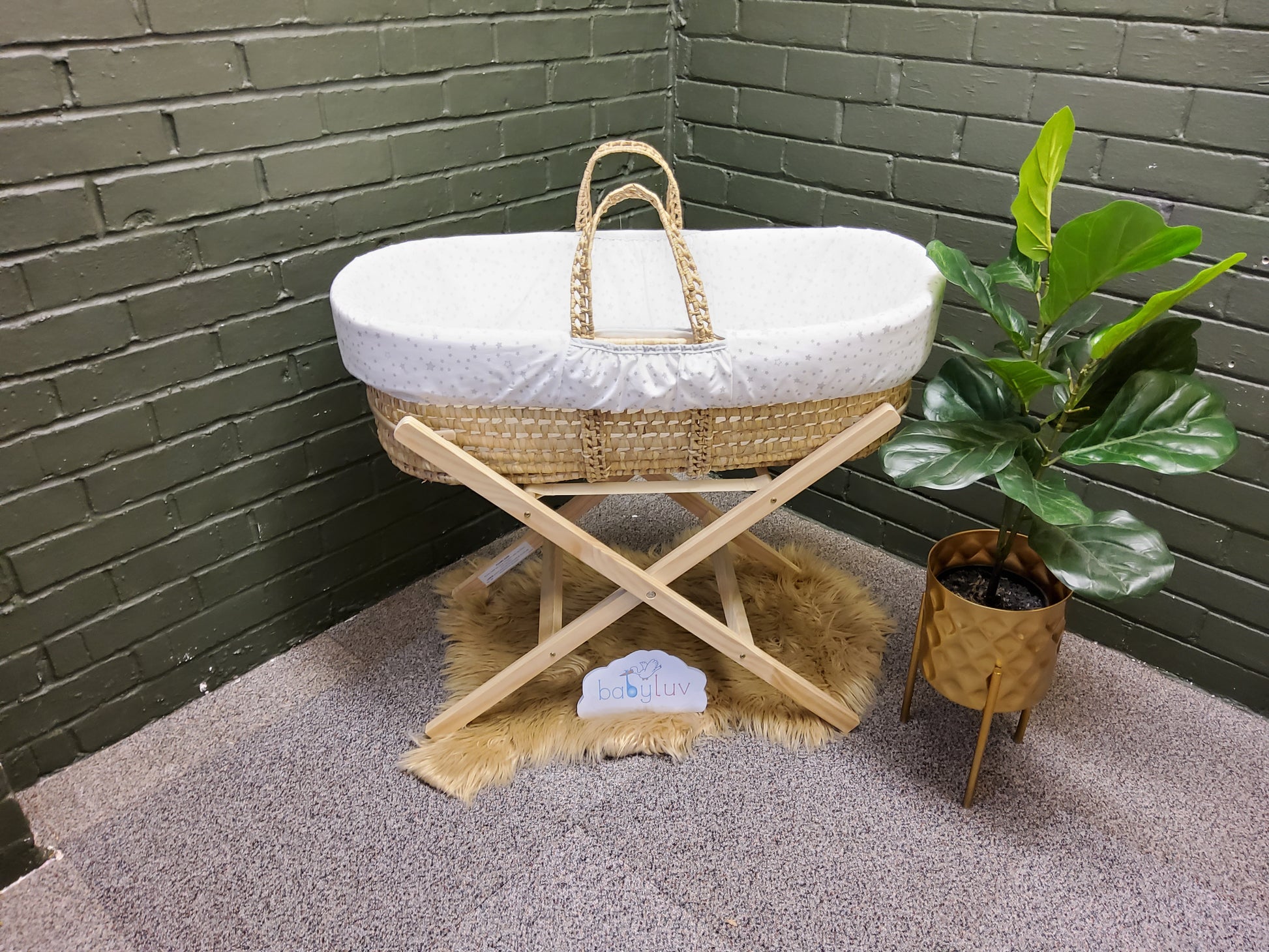 Clair De Lune Star Moses Basket combines elegant design with ultimate comfort, creating a serene space for your newborn's first moments. Crafted with care, this basket offers a cozy and practical environment, perfect for peaceful naps and gentle snuggles. Its refined star pattern adds a subtle touch of sophistication to any nursery, ensuring both style and functionality for your baby's early days.