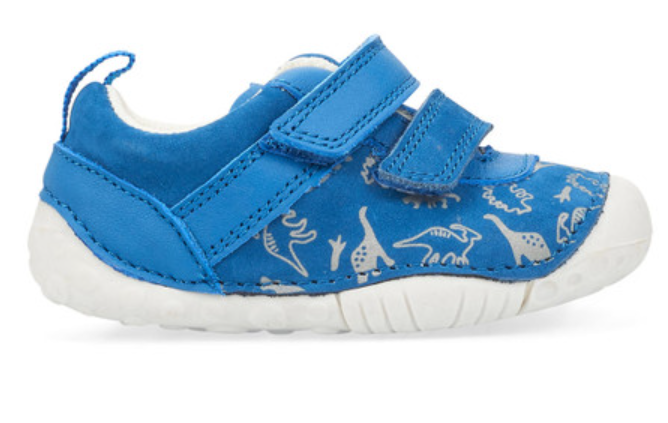 Start Rite Roar baby shoes feature a charming dinosaur print in vibrant bright blue, combining playful design with quality craftsmanship. These shoes provide comfortable support for little feet while adding a touch of fun to any outfit. Ideal for early walkers, they offer durability and style in one sophisticated package.